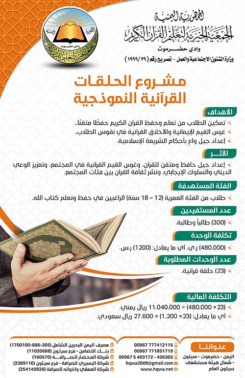 ترعى الجمعية (19) حلقة قرآنية نموذجية متفرقة، (11) حلقة نموذجية للأولاد، و (8) حلقات للبنات.
