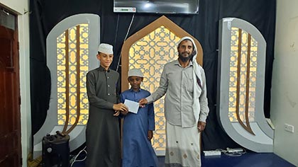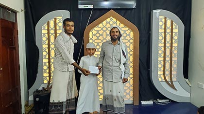 حيث تم تكريم الطالب محمد أنور باغزال لتميزه في حفظ القرآن الكريم في حلقة الحافظ الصغير.