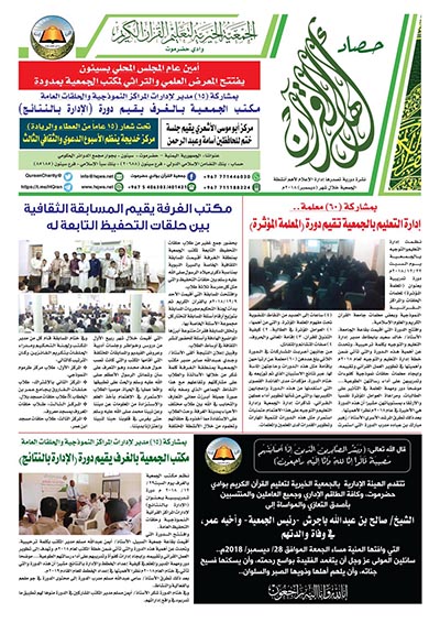 نشرة دورية تصدرها إدارة الإعلام لأهم أنشطة الجمعية خلال شهري (ديسمبر) 2018م